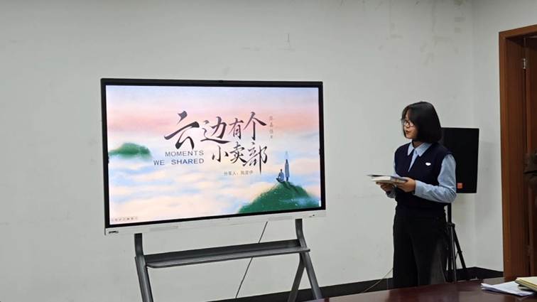 活动伊始,现场氛围温馨而热烈,主持人李嘉浩以亲切的开场白拉开分享会序幕,简要介绍了《云边有个小卖部》的创作背景与核心脉络。化学工程学院2025级过程装备与控制工程1班的陈彦伊同学进行领读,陈彦伊同学以清晰的逻辑、生动的语言对全书核心情节、人物形象进行详细解读。从刘十三在云边镇的童年时光,到他在外打拼的坎坷与坚守,再到外婆王莺莺的温柔守护与离别遗憾,陈彦伊同学带领大家重温书中的温情与感动,让在场师生对故事有了更全面、更深入的认知。