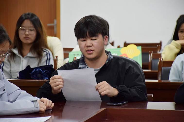 侯瑞桦、王方祥、黄雨茜、燕思瑶、王思奔、尹瀚等同学依次分享读书体会。大家结合自身成长经历与学习生活,畅谈阅读感悟:有的同学从刘十三的成长历程中,看到了青年逐梦的执着与面对挫折的坚韧,坦言要像刘十三一样,怀揣梦想、脚踏实地;有的同学被外婆王莺莺的爱与守护打动,感慨亲情是人生最坚实的后盾,呼吁大家珍惜与家人相处的时光,多陪伴、多感恩;还有同学从书中的友情故事出发,分享了跨学院合作、同窗互助的温暖经历,强调了团结协作在学习生活中的重要性。同学们的分享真挚动人、各有侧重,现场不时响起热烈的掌声,思想的火花在交流中不断绽放。