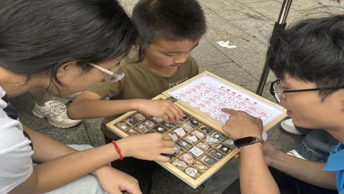 图5团队成员罗仕贵同学为青少年介绍矿石